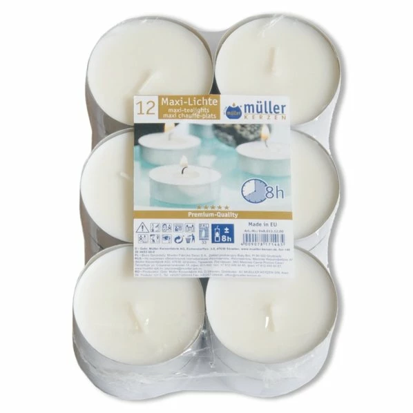 12 Maxi Teelichter – Weiß – 57×22 Mm