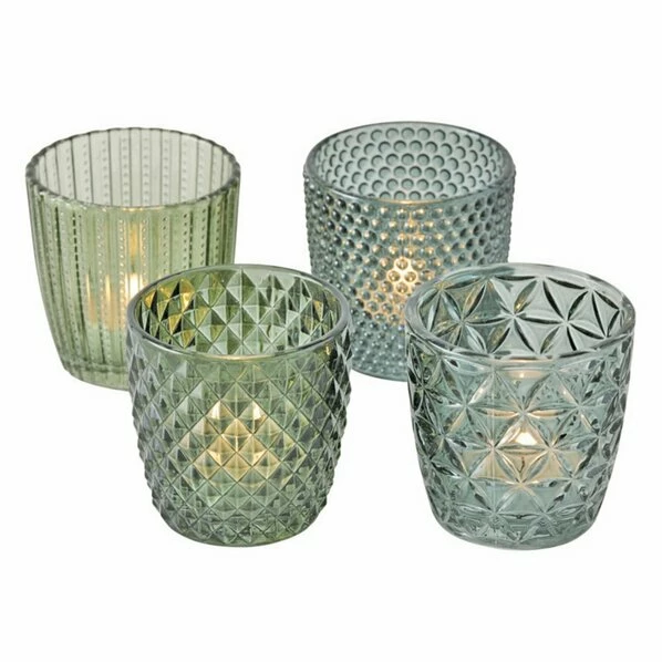 4-teiliges Windlicht-Set – Grün – 7,5 Cm Hoch