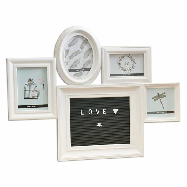 Dieser Collagenrahmen bietet Ihnen nicht nur Platz für vier ihrer Lieblingsbilder, Sie können zusätzlich mit etwa 132 Buchstaben und Symbolen etwas zu den Fotos sagen. Etwa das Datum, an welchem diese aufgenommen worden sind, oder der Ort, an dem die Fotos entstanden sind. Dafür ist die Filztafel vorgesehen, die sich in Schwarz präsentiert und ebenfalls mit einem Rahmen bestückt ist, sodass die Collage ein einheitliches und harmonisches Gesamtbild abgibt. Ihrer Kreativität sind außer der Zeichenzahl von 132 Stück, keine Grenzen gesetzt.