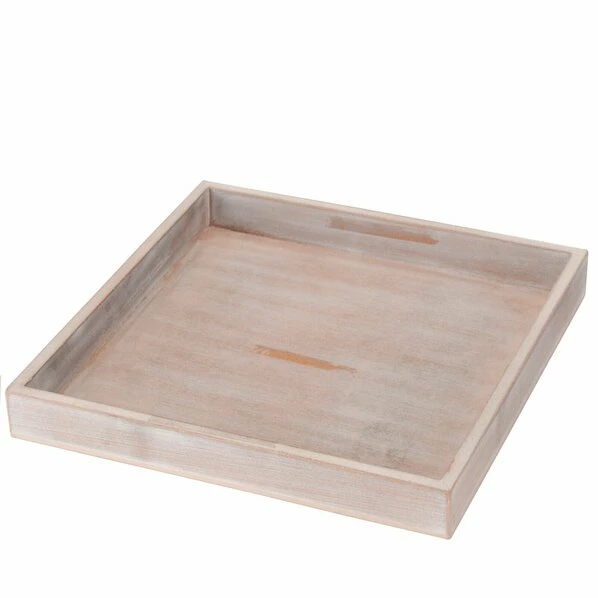 Dieses stilvolle Tablett eignet sich bestens als Abstell-Tablett. Das Tablett zeigt im verwaschenen Grauton und wurde aus natürlichem Holz hergestellt. Auf dem etwa 30 x 30 großen Tablett werden deine Dekoartikel perfekt in Szene gesetzt.