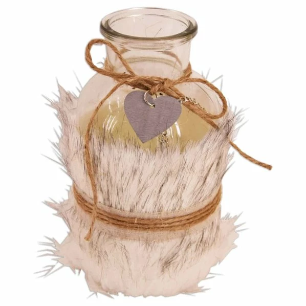 Nieldiche Dekovase im winterlichen Design. Durch das Kunstfell und den kleinen Dekoanhänger macht sie richtig was her.