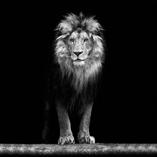 Der Löwe bietet einen majestätischen Anblick, der seinesgleichen sucht – genau diese Faszination der Wildnis fängt das spannungsgeladene Keilrahmenbild. In stolzer Pose mit mächtiger Mähne schaut der König der Tiere Ihnen förmlich direkt in die Augen. Die schwarz-weiße Optik betont die dramatische Wirkung dieses imposanten Löwenmotivs.