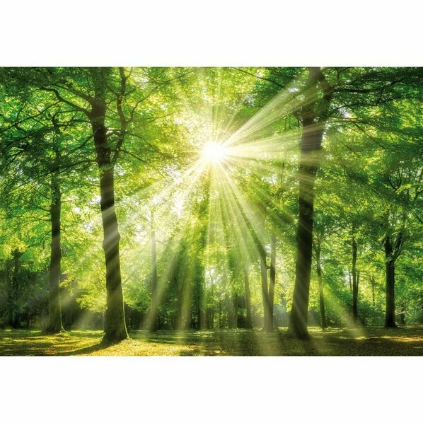 Dieses Bild überzeugt durch seine unterschiedlichen Grüntöne und sorgt für eine angenehme Atmosphäre in deiner Wohnung. Besonders beeindruckend sind die Sonnenstrahlen, die sich in die Richtung des Betrachters richten. Die Maße betragen in etwa 118 x 78 cm.