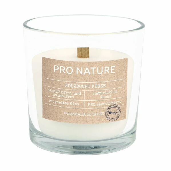 Das Stearin-Kerzenglas besteht aus einem natürlichen Wachs und ist paraffin- und palmölfrei. Der Docht dieser Kerze besteht aus Holz.