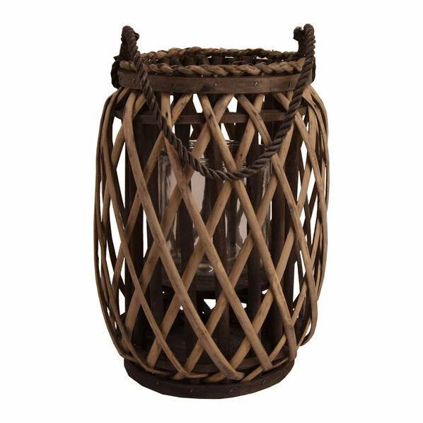 Verschönern Sie Ihren Garten mit dieser rustikalen Laterne in einer geschwungenen Form aus Rattanholz. In dem Windlicht aus Glas passen ideal Teelichter, die Ihren Garten im Dunkeln erhellen. Mit dem braunen AufhÀnger können Sie die Laterne kinderleicht und stabil befestigen.