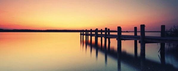 Die Landschaftsansicht des Sees mit einer hölzernen Brücke bekommt durch das besondere Licht eine nahezu magische Wirkung. Bei der Leinwand handelt es sich um ein ausgewähltes Canvas-Gewebe, welches die Darstellung exakter Konturen zulässt.
