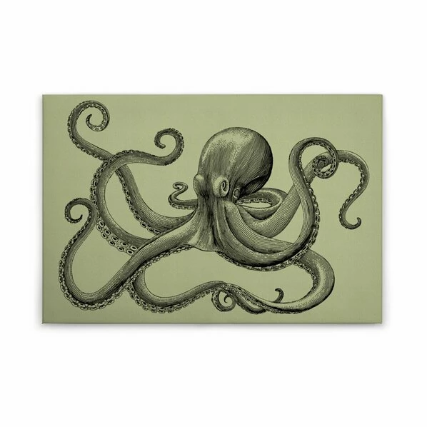 Das Zusammenspiel der Farbakzente der Krake in Grün und Schwarz macht Wohnräume zum individuellen Hingucker. Das Motiv wird auf ausgewähltem Canvas-Gewebe gedruckt und überzeugt mit exakten Konturen und einer hohen Auflösung.