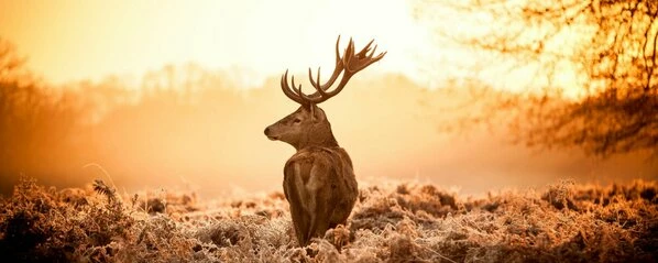 Leinwandbild MAJESTÄTISCHER HIRSCH – Braun-orange – 100 X 40 Cm