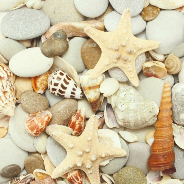Leinwandbild MUSCHELN UND STEINE – Beige – 50 X 50 Cm