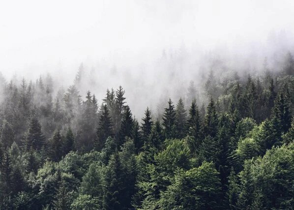 Leinwandbild NEBELIGER WALD – Grün-weiß – 70 X 50 Cm