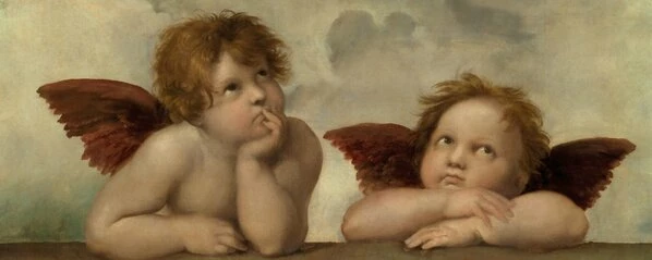 Die zwei niedlichen Engelchen schauen interessiert zu, was gerade vor ihren Augen passiert. Das Original ist Teil von Raffaels GemĂ€lde “Sixtinische Madonna” aus dem Jahr 1512/13. Bei der Leinwand handelt es sich um ein ausgewĂ€hltes Canvas-Gewebe, welches die Darstellung exakter Konturen zulĂ€sst.