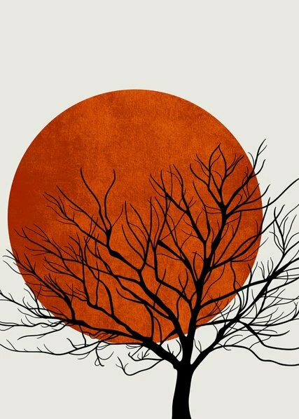 In dunklem Rot erstrahlt die Sonne hinter einem Baum. Den Leinwanddruck im minimalistischen Design können Sie einfach mit verschiedenen Einrichtungsstilen kombinieren. Gedruckt wird das Motiv auf ausgewähltem Canvas-Gewebe und überzeugt mit exakten Konturen.