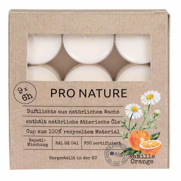Raps-Duftlicht – Kamille-Orange – 9 Stück