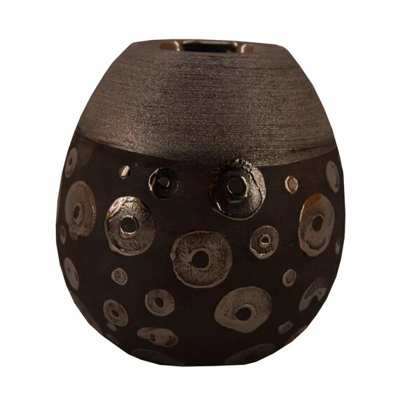 Dieser schöne Teelichthalter in Silbergrau besteht aus Keramik und ist etwa 11 Zentimeter hoch. Er ist ein Hingucker und besitzt eine eingelassene Ăffnung fĂŒr deine handelsĂŒblichen Teelichter.