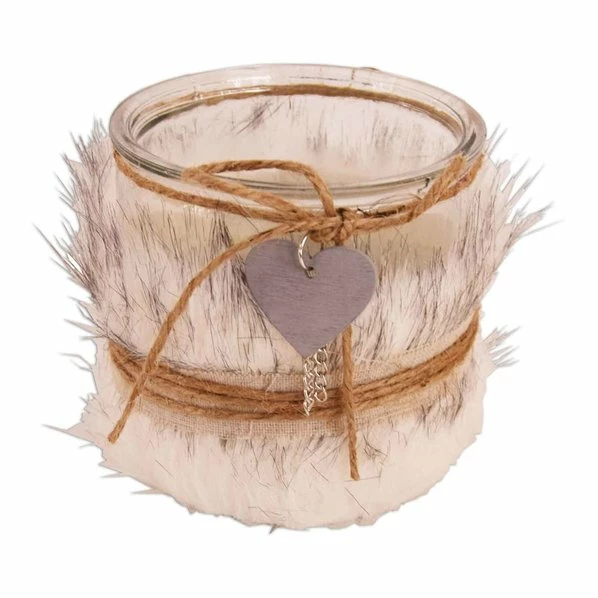 Schönes Windlicht im winterlichen Design mit Kunstfell und DekoanhÀnger.