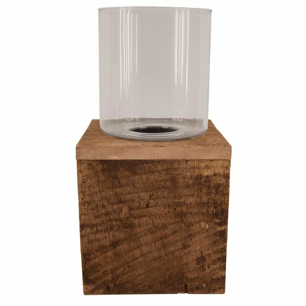 Windlicht auf einem Holzsockel. Dieses Windlicht hat eine Gesamthöhe von ca. 38 Zentimetern und wird eine schöne ErgÀnzung zu Ihrem Wohnambiente sein.