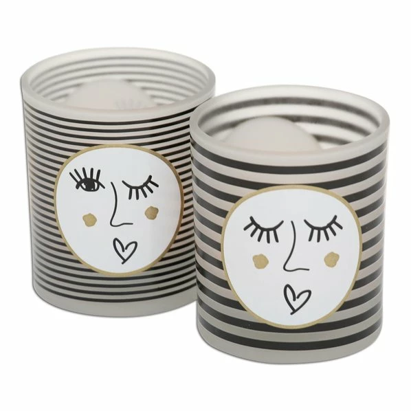 Schöne Windlichter, die eine gemĂŒtliche AtmosphĂ€re auf Ihren Tisch bringen und das mit einem edlen Touch. Denn die Kreisumrandung und die Wangenpunkte im Gesicht sind in Gold gehalten. Bringen Sie Stil in Ihre vier WĂ€nde und nehmen Sie aus unserem ROLLER-Markt Ihr Wunschmotiv mit.
